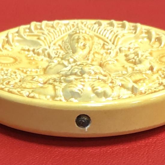 พระเทวราชโพธิสัตว์ จตุคามรามเทพ อภิปัญญา มหาเศรษฐี ผู้มีปัญญาประดุจดั่งมีทรัพย์ โดยมูลนิธิศิลปกรรม พ.ศ. 2550 (พุทธศิลป์รูปแบบของ อาจารย์เฉลิมชัย โฆษิตพิพัฒน์) ลูกเคลือบสีเหลือง ขนาด 5.5 cm. พร้อมกล่อง ถอดแบบมาจากภาพวาดของท่าน อาจารย์เฉลิมชัย โฆษิตพิพัฒน์ ชื่อ เทพผู้ปลดทุกข์ มีสุข โดย อาจารย์ปทีป สุขีรัตน์ (ลูกศิษย์อาจารย์เฉลิมชัย โฆษิตพิพัฒน์)
