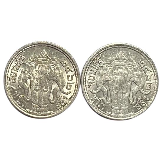 2เหรียญ!! เหรียญกษาปณ์ 1 สลึง รัชกาลที่ 6 มหาวชิราวุธ หลังช้างสามเศียร ปี 2462 ผ่านการล้าง