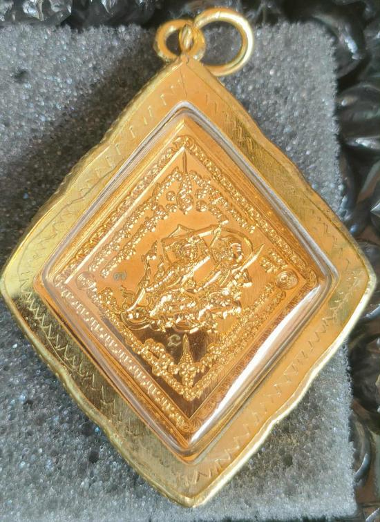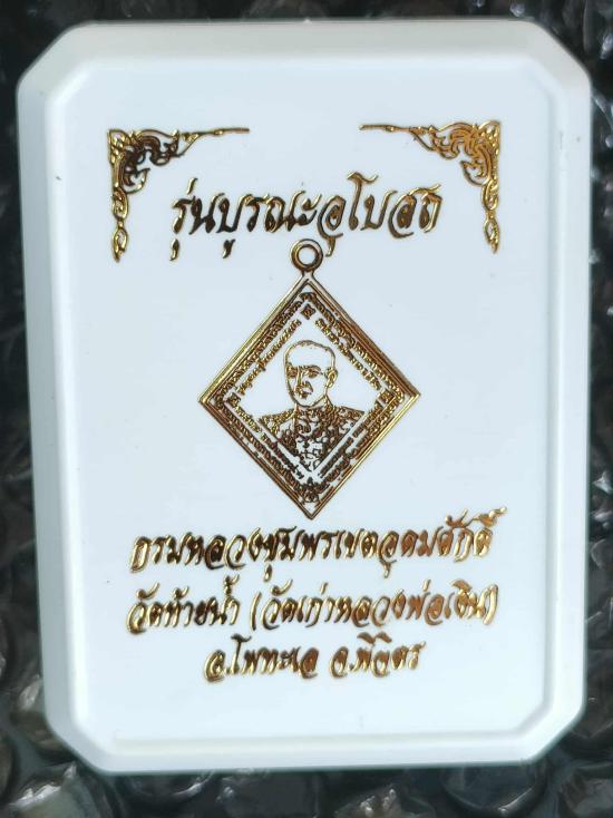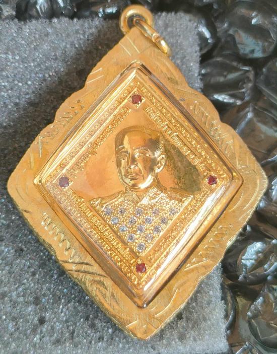 เหรียญกรมหลวงชุมพร รุ่น"บูรณะอุโบสถ"วัดท้ายน้ำ(วัดเก่าหลวงพ่อเงิน)จ.พิจิตร พิมพ์สี่เหลี่ยมข้าวหลามตัด เนื้อชุบทอง ฝังเพชรเต็มฉลองพระองค์(15เม็ด) ฝังพลอยแดงประจำยาม เลี่ยมกรอบทอง หมาย ๗ (7) พร้อมกล่อง