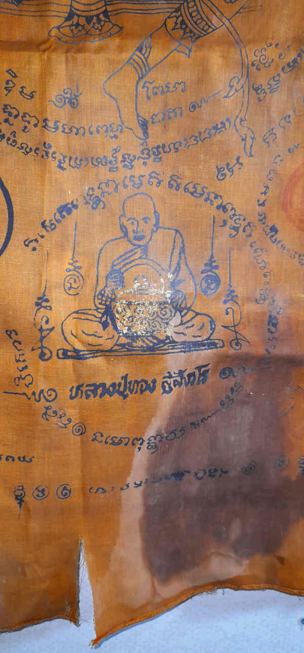 +++(( วัดใจเคาะเดียวสุดยอดหายาก 100บ. )) ผ้ายันต์ ฝ่ามือ ผืนใหญ่ หลวงปู่ทอง วัดป่ากอ สงขลา ผืนใหญ่อลังการ สูงประมาณ 140ซ.ม กว้าง 80ซ.ม เข้มขลังผืนใหญ่มากครับ มีผุขาด มีปิดทองเก่าด้วยครับ ดึงจากผนังมา