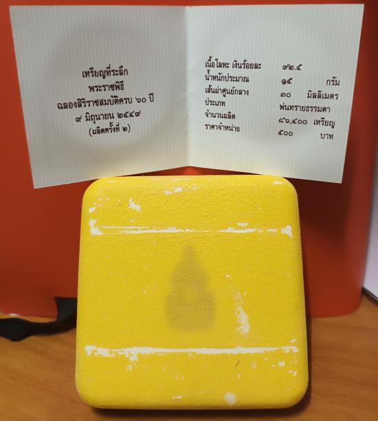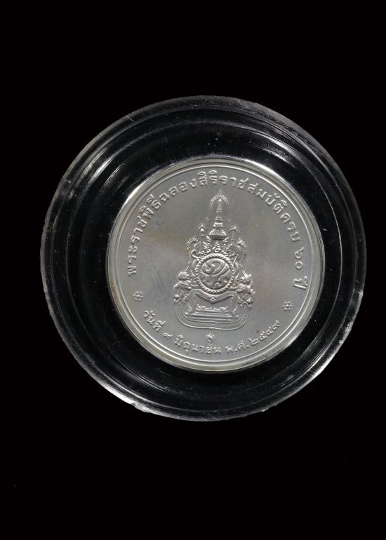 เหรียญในหลวงรัชกาลที่9 ที่ระลึกพระราชพิธีฉลองสิริราชสมบัติครบ 60 ปี ปี2549 ((( เนื้อเงิน พ่นทรายธรรมดา ))) เก่าเก็บ สวยเดิม กล่องเดิม+ใบ