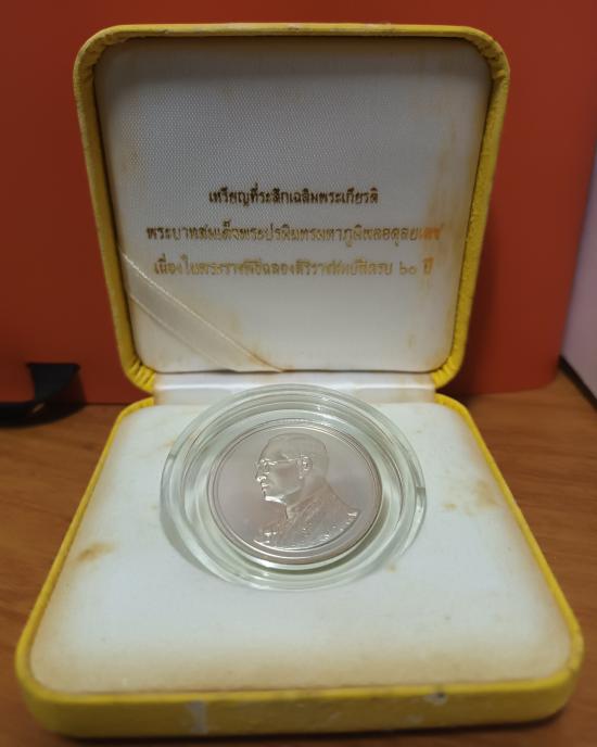 *เคาะเดียว* เหรียญในหลวงรัชกาลที่9 ที่ระลึกพระราชพิธีฉลองสิริราชสมบัติครบ 60 ปี ปี2549 ((( เนื้อเงิน ))) กล่องเดิม+ใบ