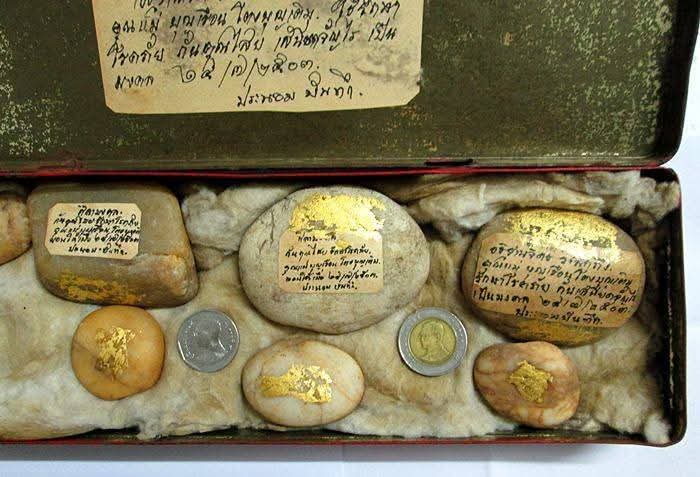 ศิลาน้ำ คุณแม่บุญเรือน ได้ทำการอธิษฐานไว้เพื่อใช้ป้องกันภัยบางประการ ใช้แทนของอธิษฐานของท่าน เวลาวายชนม์ไปแล้ว ศิลาน้ำของท่านมีความศักดิ์สิทธิ์ มีสรรพคุณครอบจักรวาล มีอานุภาพกันภัย รักษาโรคภัย ตลอดจนคุ้มครองรักษาผู้มีติดตัวไป เมื่อใช้ศิลาน้ำใส่ในน้ำ ก็กลายเป็นน้ำอธิษฐาน ไว้รับประทานแก้และป้องกันโรค ทั้งใช้ป้องกันอันตรายต่าง ๆ ได้ด้วย
