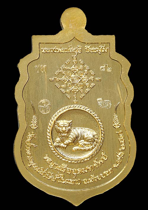 มาแรง 1ใน 90 เหรียญเสมาพญาเสืออุดมทรัพย์ พระอาจารย์ประสูติ (หลวงพ่อประสูติ) วัดในเตา ตรัง เนื้อชุบทองโบราณ เลขสวยๆNO.82 สวยมากครับ |