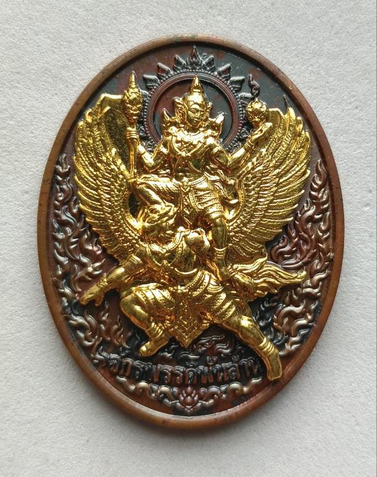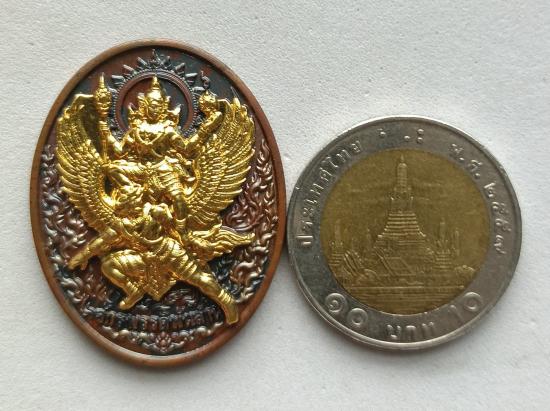 วัดใจเคาะเดียวแดงจ้า เหรียญนารายณ์ทรงครุฑ พระอาจารย์เลี้ยง วัดจอมเกษ เนื้อตะปูหน้ากากชุบน้ำทองคำแท้ มีโค็ดGold99.99 หมายเลข47 เคาะเดียวแดงจ้า