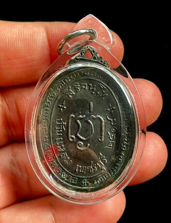 วัดใจ เหรียญพระครูวชิรกิจโสภณ (เท่ง) วัดอุตมิงค์ บ้านแหลม เพชรบุรี ปี 2518 เนื้อทองแดงรมดำ เลี่ยมพลาสติก |