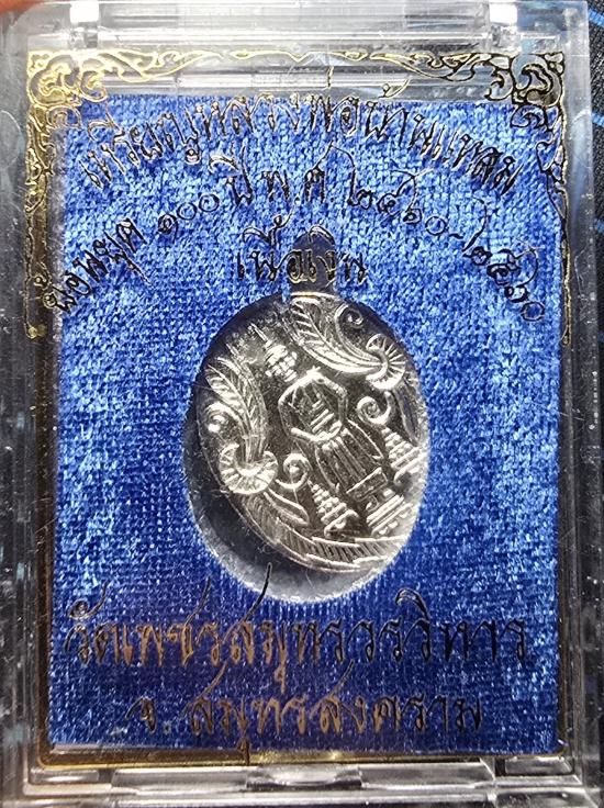 เปิดบูชาเหรียญย้อนยุค 100 ปี หลวงพ่อบ้านแหลม วัดเพชรสมุทร ปี 2560 เนื่อเงิน ห่วงเชื่อม กล่องเดิมสวยมาก ด้านหลังตอกโค๊ตเพชร ใช้แทนของเก่าได้สบาย (ราคาวัดที่ออกบูชา 1250) องค์นี้ถูกกว่าครับครับ องค์นี้หลักร้อยครับ |