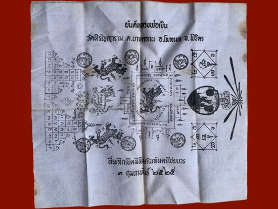 ผ้ายันต์หลวงพ่อเงิน วัดหิรัญญาราม ปี 25 จ.พิจิตร 9x9.5 นิ้ว วัดใจแค่ไหนแค่นั้นครับ