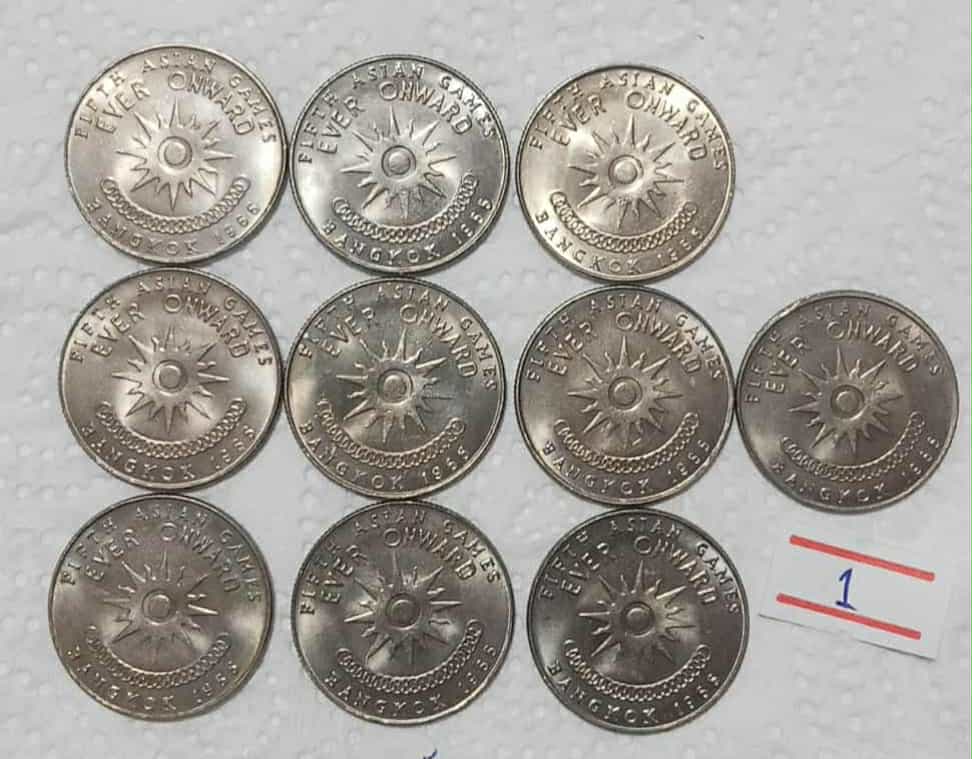 เหรียญ 1 บาท เอเชี่ยนเกมส์ ครั้งที่ 5 ในหลวงคู่ราชินี พ.ศ.2509 ในสมัยรัชกาลที่ 9 สภาพไม่ผ่านใช้งานผิวแกะถุง จำนวน 10 เหรียญ ครับ #1#