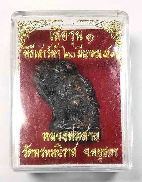 เสือรุ่น๑ รุ่นแรก หลวงพ่อสาย วัดพรหมนิวาส จ.อยุธยา ปลุกเสกพิธีใหญ่ เสาร์ห้า เมตตา มหาอำนาจ เมื่อวันที่ 20 มีนาคม พ.ศ.2553 ตอกโค๊ดเฑาะว์ และหมายเลขกำกับทุกตัว มาพร้อมกล่องเดิมจากวัด