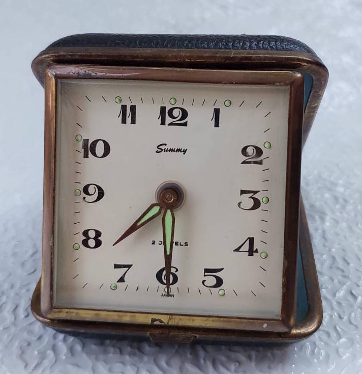 ***วัดใจ***นาฬิกาไขลาน (Made in Japan) นาฬิกาปลุกเดินทางแบบพับได้วินเทจ เรโทร ตลับแป้ง |