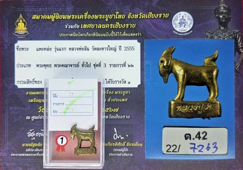 แพะหล่อ รุ่นแรก หลวงพ่อสิน วัดละหารใหญ่ เนื้อทองฝาบาตร ปี2555 ติดรางวัลที่1 งานสมาคมพระเครื่องพระบูชาไทย |