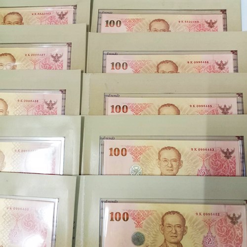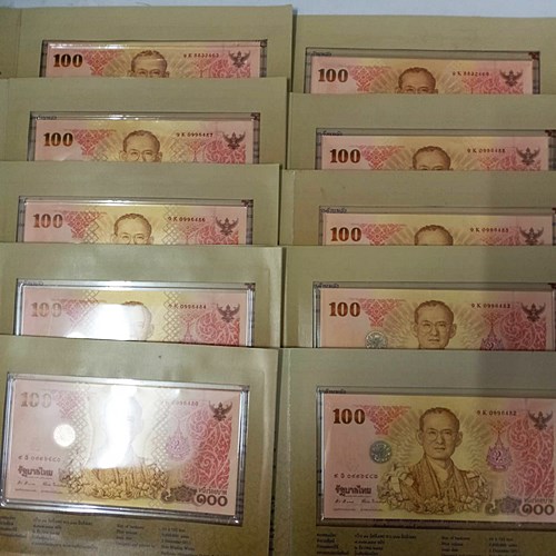 ธนบัตร 100บาท ที่ระลึก 84พรรษา รัชกาลที่9+ปก จำนวน 10 ใบ สภาพตามรูป .....
