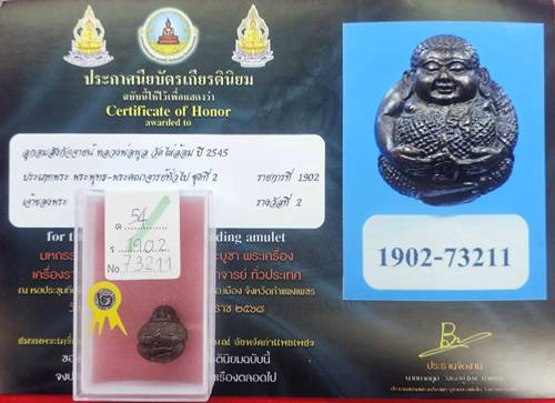 ลูกอมพระสังกัจจายน์ หลวงพ่อพูล วัดไผ่ล้อม เนื้อโลหะ ปี2545 ติดรางวัลที่2 |