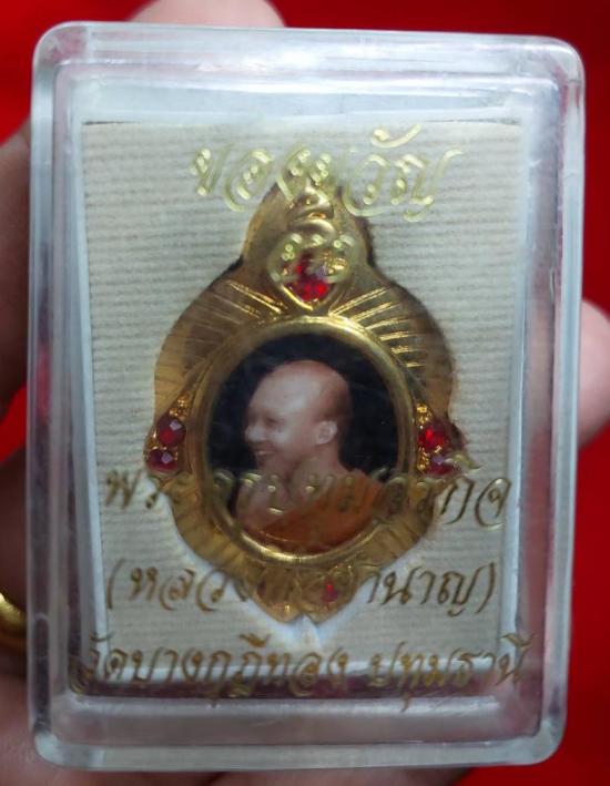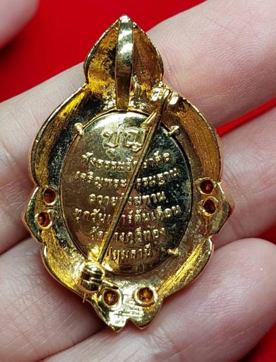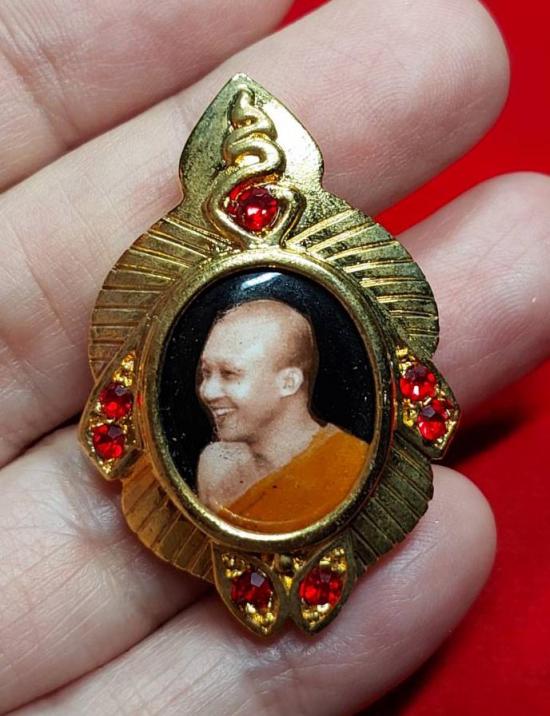 ((( เข็มกลัดล็อคเก็ตของขวัญ ))) "รุ่นแรก" หลวงพ่อชำนาญ วัดบางกุฎีทอง พร้อมกล่อง ((เนื้อโลหะชุบทอง ฝังพลอยแดง ))