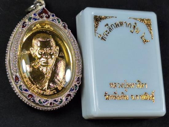 หลวงปู่ศิลา(มหาศิลา) เหรียญกระฐินรุ่นแรก วัดพระธาตุหมื่นหิน ปี65 เนื้อกะไหล่ทอง เลี่ยมเงินอย่างดีพร้อมใช้ มีกล่องเดิม หมายเลข ๙๘๒๑