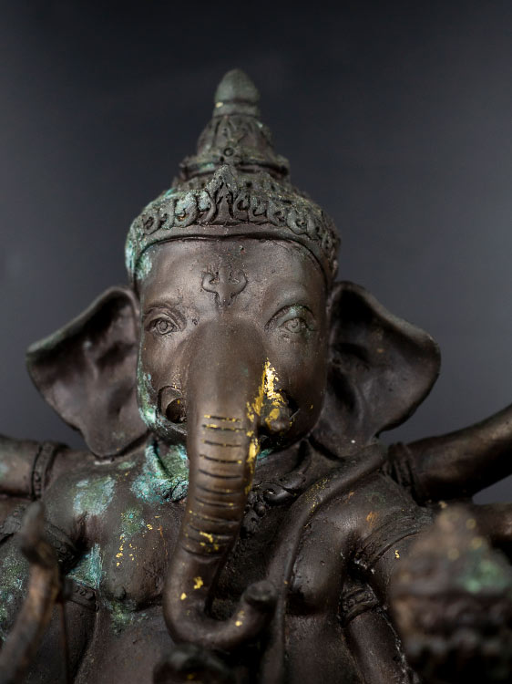 **พระวีระคณปติ (พระพิฆเนศวร์ปาง 16 กร) 15 นิ้วเนื้อโลหะรมมันปู [หมายเลข 166]