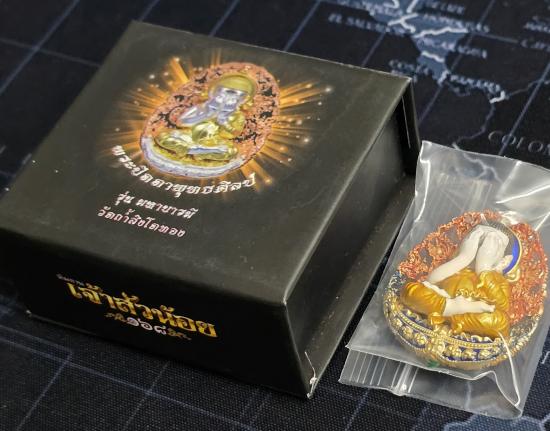 เนื้อทองระฆัง เพ้นองค์ ลงยาจีวร ลงยามาสเตอร์พีช ป้ายหลังลงยาธงชาติ พระสวยมาก เลข ๘๖...พร้อมกล่องแม่เหล็ก