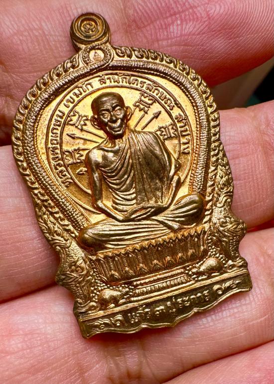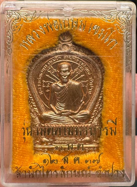 เหรียญนั่งพาน 3 มต เนื้อทองแดง หลวงพ่อเกษม ปี 2536 พร้อมกล่องเดิม