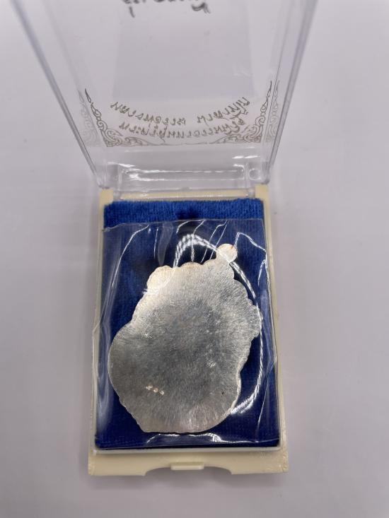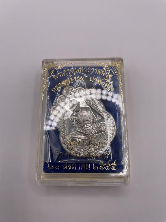 หลวงพ่อรวย ปาสาทิโก รุ่นอายุยืน เนื้อเงินหลังเรียบ หมายเลข 513 พร้อมกล่อง