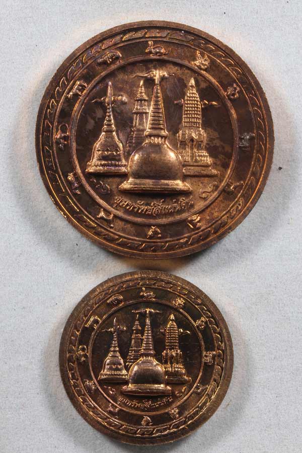 เหรียญขุมทรัพย์สี่แผ่นดิน เนื้อทองแดง ใหญ่กับเล็ก