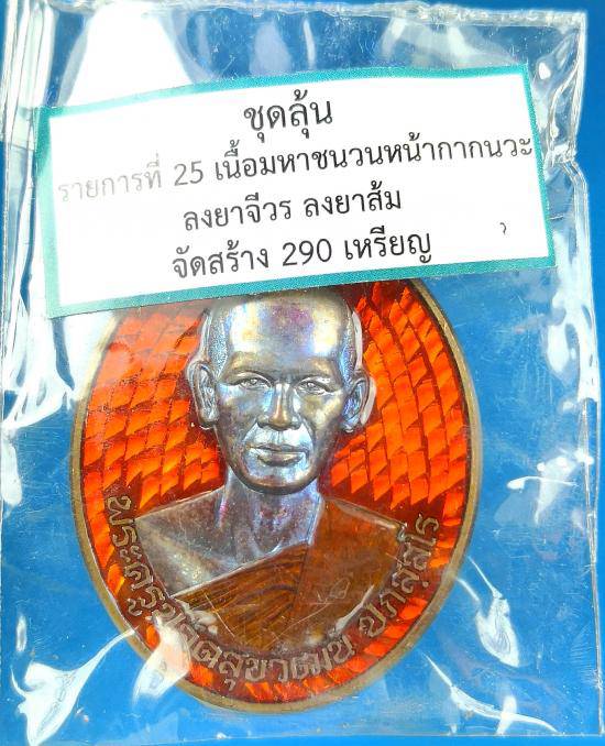 1600-เคาะเดียว เหรียญอุดมทรัพย์ พระอาจารย์ต้อม วัดท่าสะแบง ชุดล้น เนื้อมหาชนวนหน้ากากนวะ ลงยาส้ม ลงยาจีวร จัดสร้าง290เหรียญ เลข๒๙ สองหลักโซนวันเกิด