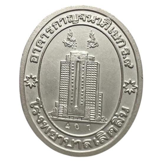 เหรียญเนื้อเงินลงยา 3 สี หลวงปู่ทิม วัดพระขาว รุ่นสร้างอาคารกาญจนาภิเษก ร.๙ โรงพยาบาลเลิดสิน ตอกโค้ด/ตอกหมายเลข แกะบล็อคสวยมากเหมือนหลวงปู่ องค์นี้หมายเลข 407