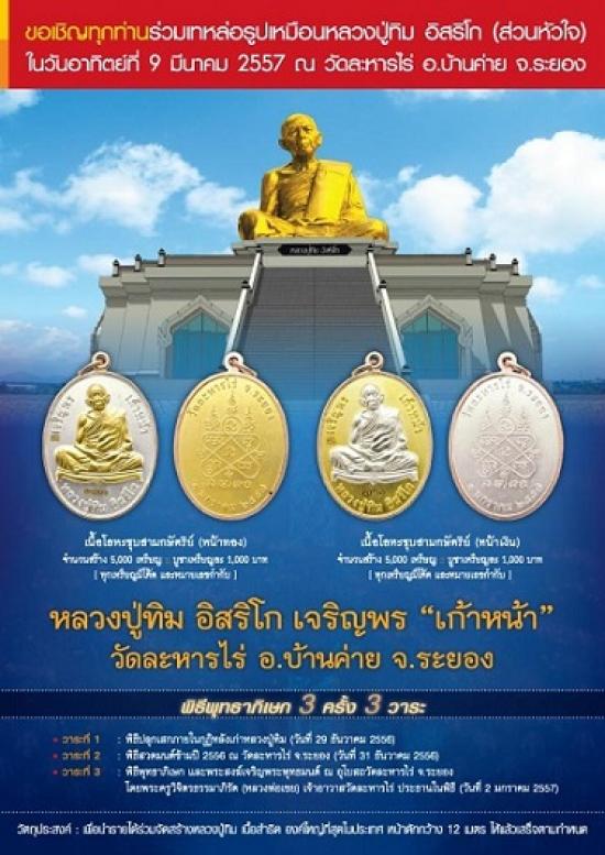 ราคาวัด 1200 เคาะเดียว 500 *เหรียญเจริญพร เก้าหน้า หลวงปู่ทิม อิสริโก วัดละหารไร่ จ.ระยอง ปี 2557 เนื้อนวะโลหะ หมายเลข 3074 สร้างน้อย 4,100 เหรียญ ตอก 2 โค๊ต นะ+ท ปลุกเสก 3 ครั้ง 3 วาระ พร้อมกล่องเดิม