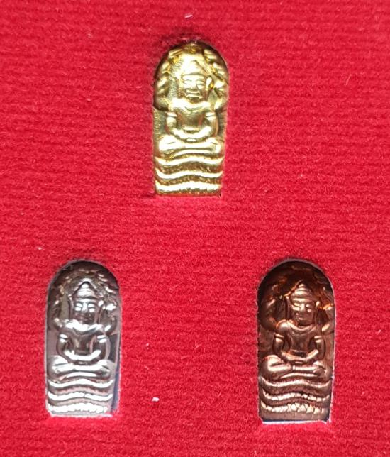 พระปรกใบมะขาม รวยเงินล้าน หลวงปู่ทิม วัดละหารไร่ เนื้อชุบทอง เงิน นาค ปี56 พร้อมกล่องเดิมๆๆ