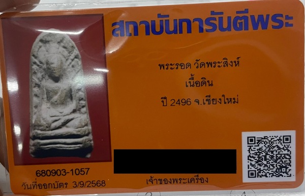 พระรอด วัดพระสิงห์ จ.เชียงใหม่ พ.ศ.๒๔๙๖ เนื้อจัดเข้ม เนื้อหามวลสาร จัดจ้าน + บัตรรับรองการันตีพระ