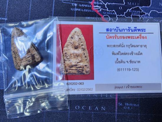 ชื่อพระเครื่อง พระสรรค์นั่ง กรุวัดมหาธาตุ จ.ชัยนาท พิมพ์ไหล่ตรงข้างเม็ด เนื้อดิน