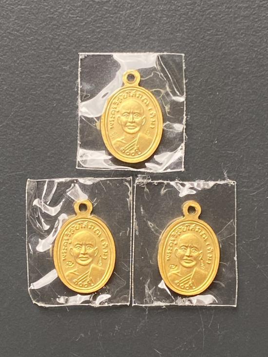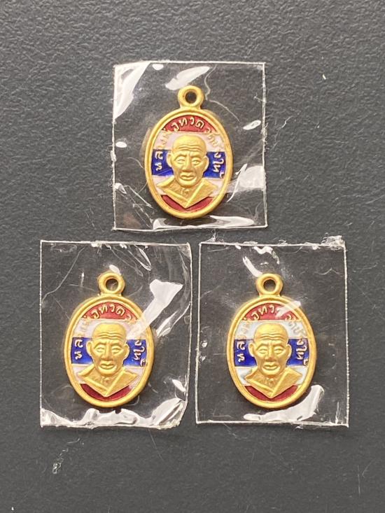 เม็ดแตงหลวงปู่ทวด หลังอาจารย์ทิม รุ่น100ปี เนื้อชุบทองลงยาสีธงชาติ 3องค์ |