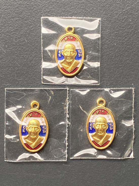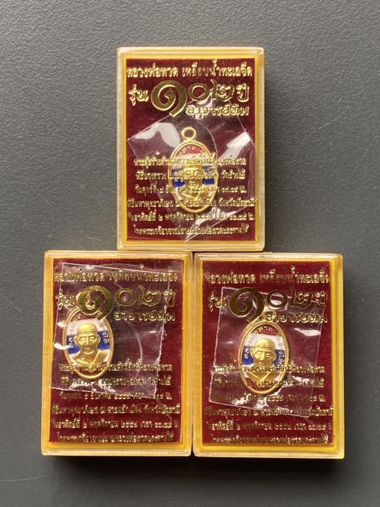 เม็ดแตงใบขี้เหล็กหลวงปู่ทวดหลังอาจารย์ทิม รุ่น102ปี เนื้อ ทองแดงนอกชุบทองลงยาธงชาติ 3องค์ |