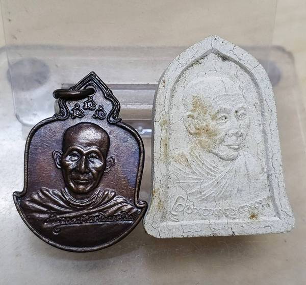 ลำปาง หลวงพ่อเกษม เนื้อผง+ เหรียญ ฯ 75 ปี + |