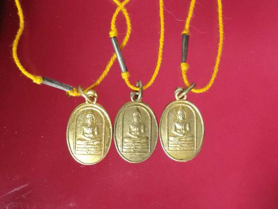 เหรียญเม็ดแตงพระพุทธ+สายสิญ+ตะกรุด อาจารย์นวม วัดอนงค์ กทม. ปี ๒๕๐๑ กะไหล่ทอง 3 เหรียญ |