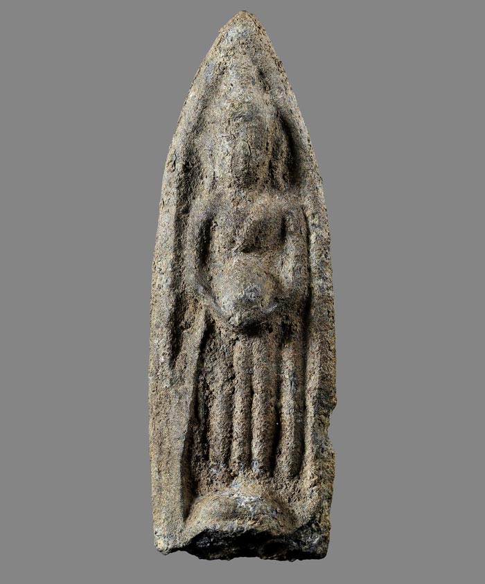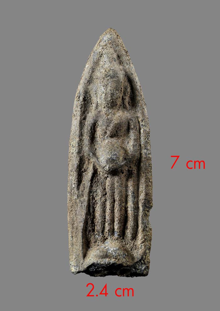 พระกรุพิมพ์อุ้มบาตร (ไม่ทราบกรุ)เนื้อชินเก่า ขนาดองค์พระ กว้าง 2.4cm สูง 7 cm สภาพเก่ามีอายุ