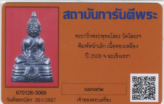 พระกริ่งพระพุทธโสธร วัดหลวงพ่อโสธรฯ พิมพ์หน้าเล็ก (หน้าสรพงษ์) เนื้อทองเหลือง ปี2508