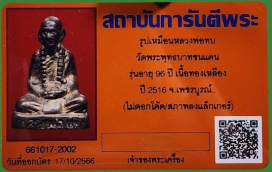 รูปหล่อหลวงพ่อทบวัดชนแดน เนื้อทองเหลือง ปี2516 มาพร้อมบัตรการันตรี