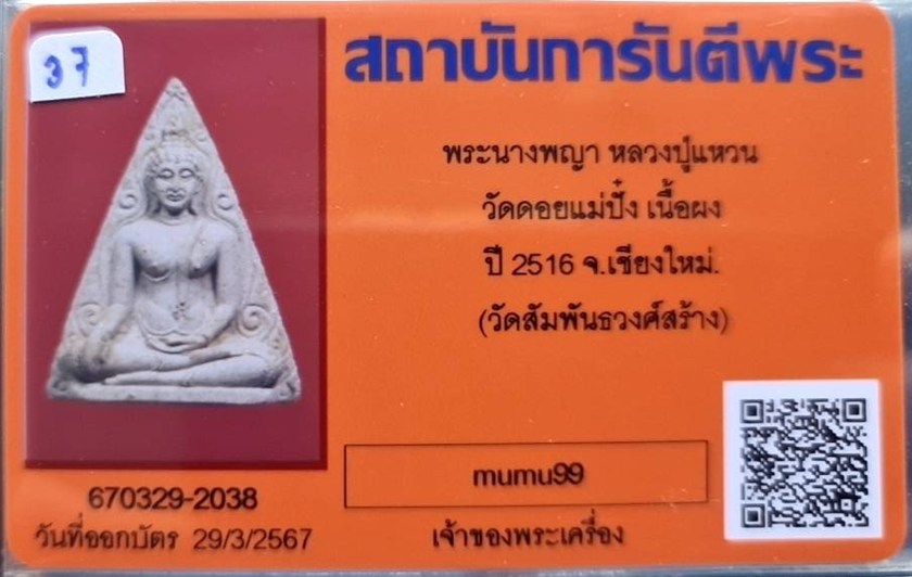 @## พระนางพญา.. ลป.แหวน วัดดอยแม่ปั๋ง จ.เชียงใหม่ (พิธีปลุกเสกใหญ่ใหญ่ วัดสัมพันธวงศ์ กทม.จัดสร้าง ) ปี2516 เนื้อผง พร้อมบัตรรับรอง สภาพสวยมาก รับประกันความแท้ตลอดชีพ พิธีปลุกเสกในวาระแรก ปี 2516 -วัต |