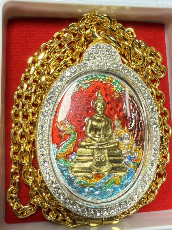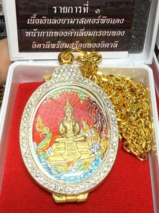 ((เงินหน้าทองคำ)) เหรียญหลวงพ่อโสธรรุ่นประวัติศาสตร์ครบรอบ 255 ปี วาระพิเศษ เนื้อเงินลงยามาสเตอร์พีชแดงหน้ากากทองคำเลี่ยมกรอบทองอิตาลีฝังพลอยล้อม พร้อมสร้อยทองอิตาลี เดิมจากวัด เลขโค้ต 38 พร้อมกล่องเด