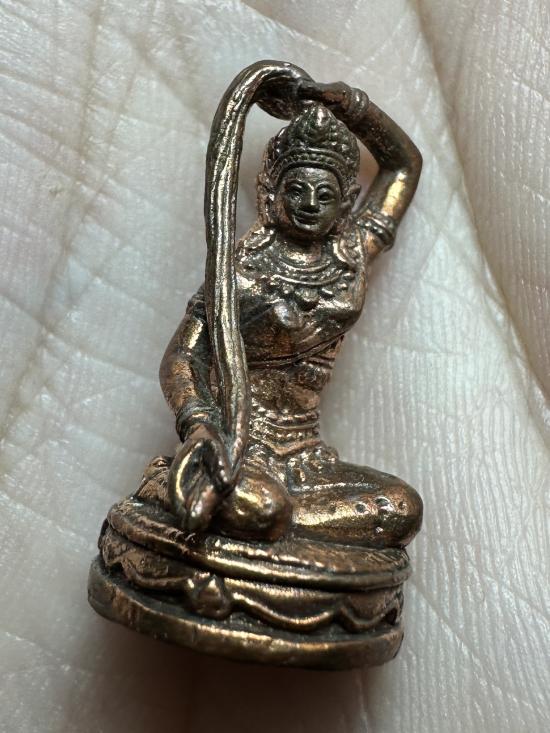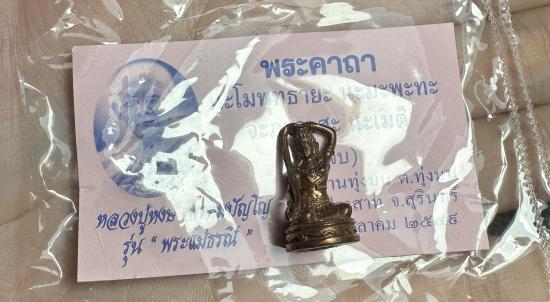 หลวงปู่หงษ์ พระแม่ธรณี รุ่นแรก เนื้อสำริด ปี 2549 พร้อมซองเดิม ตอกโค๊ตตอกหมายเลขใต้ฐาน |
