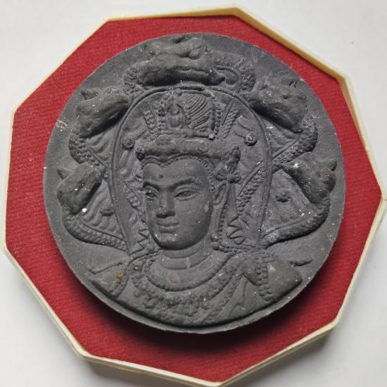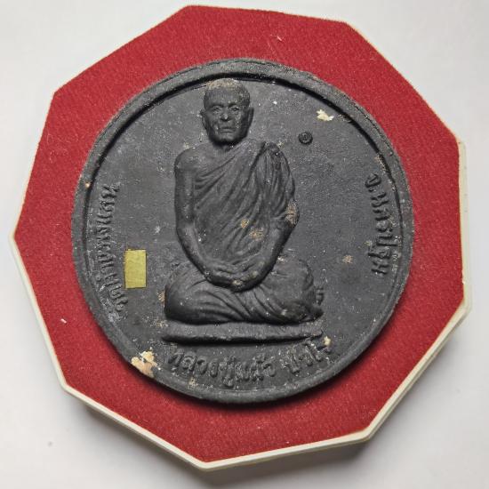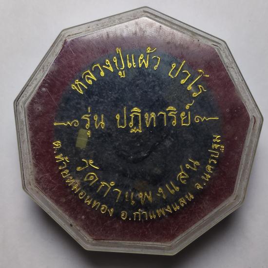 หลวงปู่แผ้ว ปวโร วัดกำแพงแสน จังหวัดนครปฐม รุ่นปฏิหารย์ เนื้อผงดำ ฝังตะกรุด หลังองค์พ่อจตุคามรามเทพ ขนาดประมาณ5ซม.