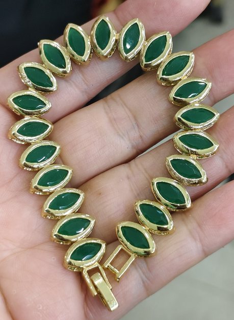 เทขาดทุน+ กำไลแขนมรกตทรงมาคียาว 7.นิ้ว งานจิวเวลลี่ชุบทองแท้ |
