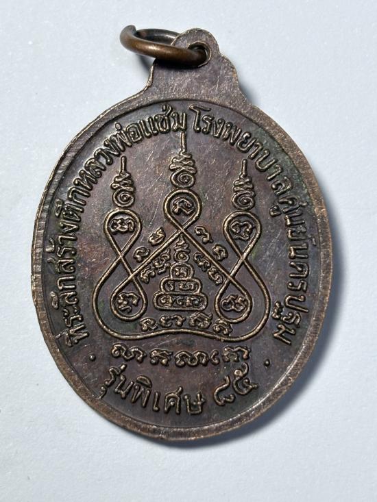 เหรียญหลวงพ่อแช่ม วัดดอนยายหอม รุ่นสร้างโรงพยาบาล (หลังคาระเบิด) ปี พ.ศ. 2535