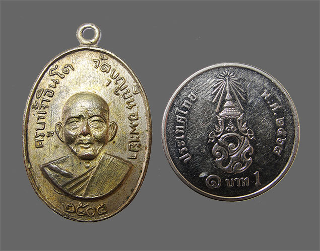 เหรียญครูบาอินโต (แจกแม่ครัว ) วัดบุญยืน เนื้อทองแดงกะไหล่ทอง จ.พะเยา ปี ๒๕๐๘ สวยเดิม |