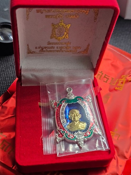 เหรียญพญาเต่าเรือน รุ่นมหาเศรษฐ๊ หลวงปู่ปั่น วัดหนองกระทุ่ม เนื้อเงินลงยาหน้ากากทองคำ หมายเลข 478 พร้อมกล่องเดิม เคาะแรกแดงครับ