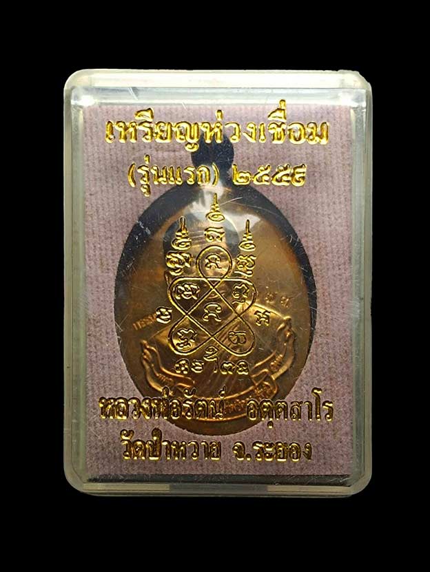 หลวงพ่อรัตน์ วัดป่าหวาย เหรียญห่วงเชื่อมรุ่นแรก เนื้อสัตตะหลังแบบ โค๊ตกรรมการ หมายเลข 673 ปี พ.ศ.2559 จ.ระยอง ซีลเดิม กล่องเดิม พระสวยสมบูรณ์ หายาก |