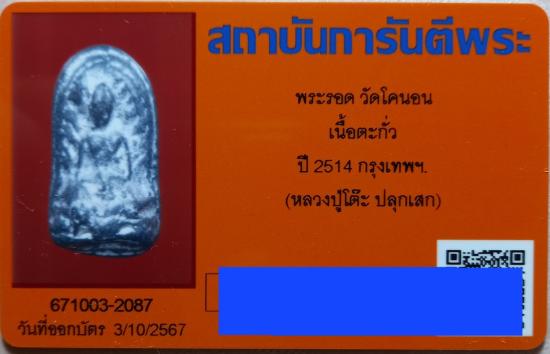 087,เคาะเดียวแดงสบายใจไม่ต้องลุ้นครับพี่ๆ พระรอดวัดโคนอน เนื้อตะกั่ว ปี 2514 จ.กรุงเทพฯ(หลวงปู่โต๊ะเมตตาปลุกเสกครับ)พร้อมบัตรพระแท้ตลอดกาลจัดเก็บได้สบายใจครับ
