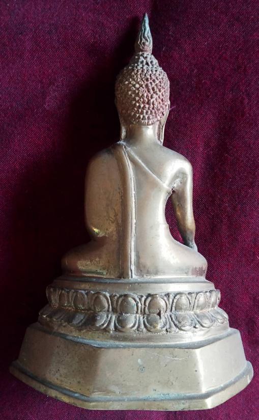 พระบูชา ปางมารวิชัย ขนาดหน้าตักประมาณ 2 นิ้ว 6 หุน ประทับนั่งบนผ้าทิพย์ ฐานบัวคว่ำบัวหงายงาม ๆ เนื้อทองเหลืองหล่อค่อนข้างหนา สีเริ่มออกคล้ำ ใต้ฐานมองเห็นดินฝรั่งในองค์พระ สภาพสวยตามรูป ส่งฟรีทั่วไทย รับประกันตามกฎครับ |