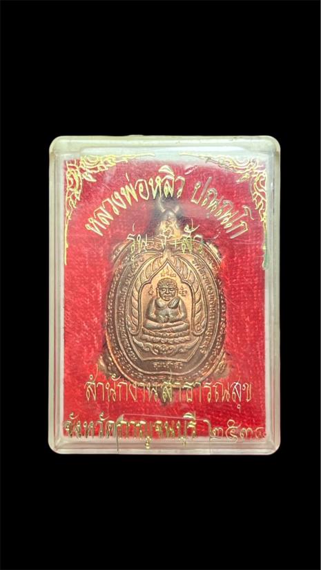 เหรียญพญาเต่า รุ่นเจ้าสัว ปี 38 หลวงปู่หลิว วัดไร่แตงทอง เนื้อทองแดง กล่องเขี้ยวหัก